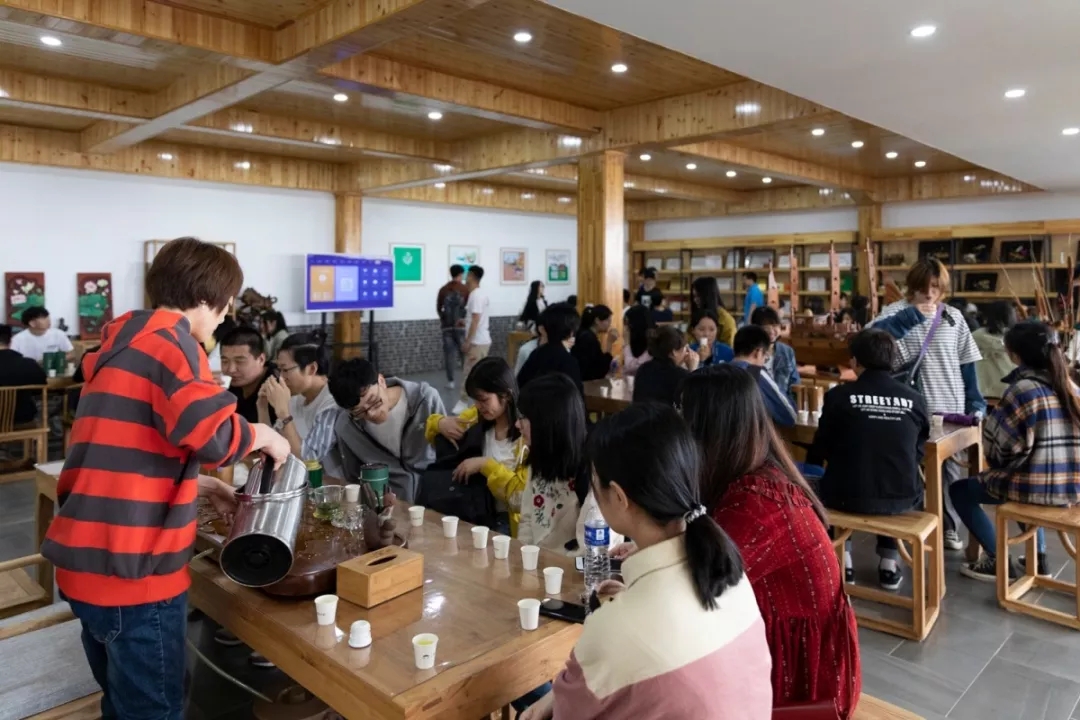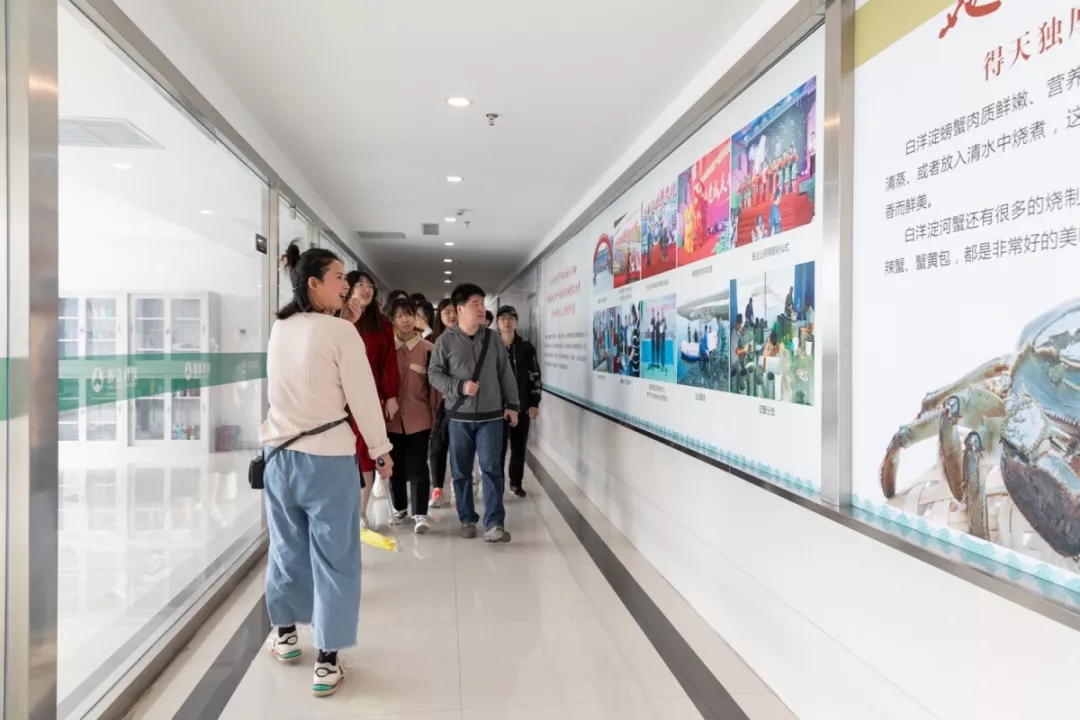 学生们首先来到生产车间,参观了荷叶茶及麻鸭蛋的生产过程。荷叶茶通过“绿茶+乌龙茶”工艺结合制作,祛除荷叶的苦涩,提其茶香,并引进现代化的杀青、揉捻和提香设备,经过20多道工序精制而成,既保留了荷叶中的多种有益成分,又让它有媲美传统茶的茶香、茶色和口感。同学们在了解其发展、制作过程后,深切地体会到设计在产品制作中所带来的新活力。