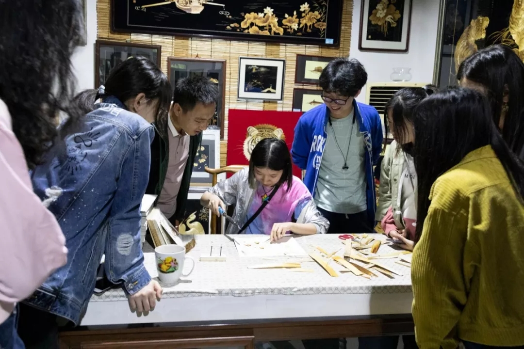 此外,师生们现场观看了工人师傅对芦苇画制作过程的展示,并动手体验芦苇画的制作过程。