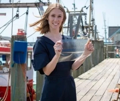英国萨塞克斯大学(University of Sussex)刚毕业的24岁产品设计学生露西.休斯(Lucy Hughes)发明出一种由有机鱼废弃物制成的生物可降解一次性塑料。