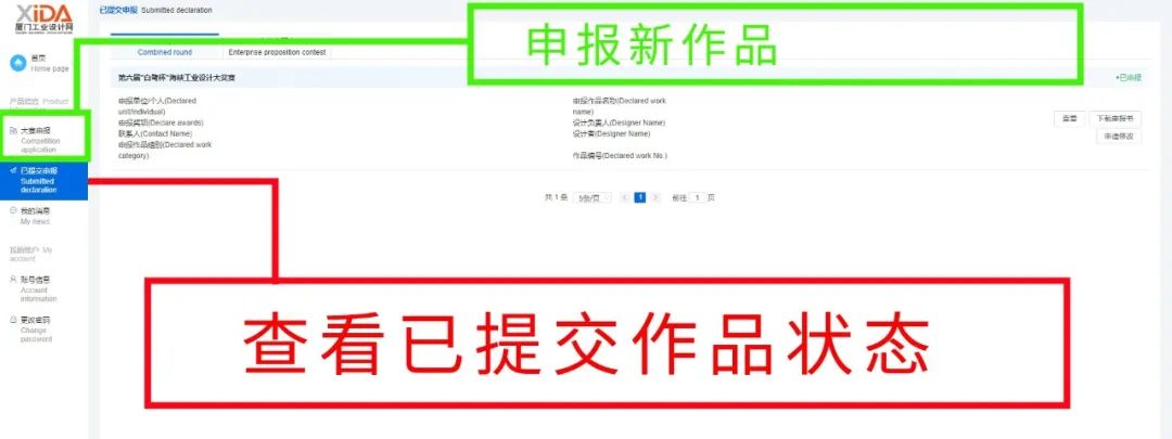 提交作品后,可在个人中心(申报主页)查看已提交作品状态及进行新作品申报。